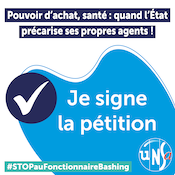 > la pétition contre les 3 jours de carence et pour une hausse des salaires : https://www.unsa-fp.org/article/Petition